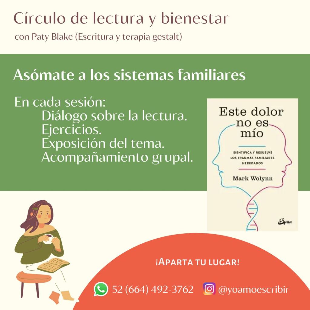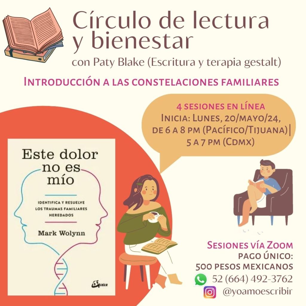 Acércate a conocer más sobre tu sistema familiar, a través del círculo en línea que realizaremos sobre el libro «Este dolor no es mío». ![]()